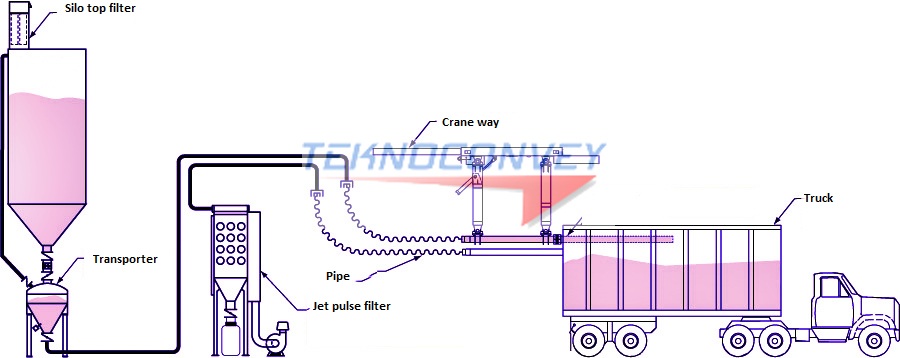 Pneumatic Dense Phase for grount handled, bulk bag unloading, weighed, batched, mixed bulk materials.